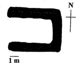 Sunnar er aflöng tóft, grjóthlaðin, með opinn gafl til vesturs, en norðar er